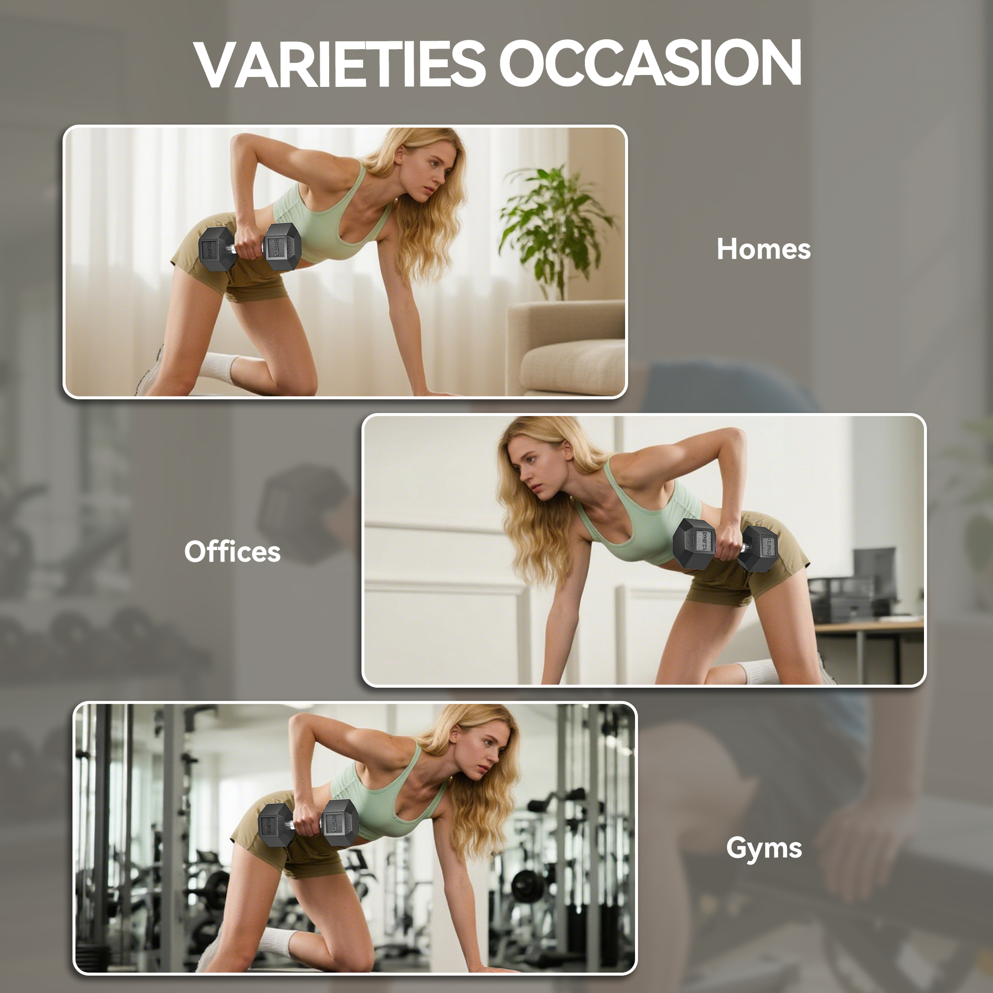 - Dumbbell Head: 14.8cm (corner to corner), 12.8cm (side to side)